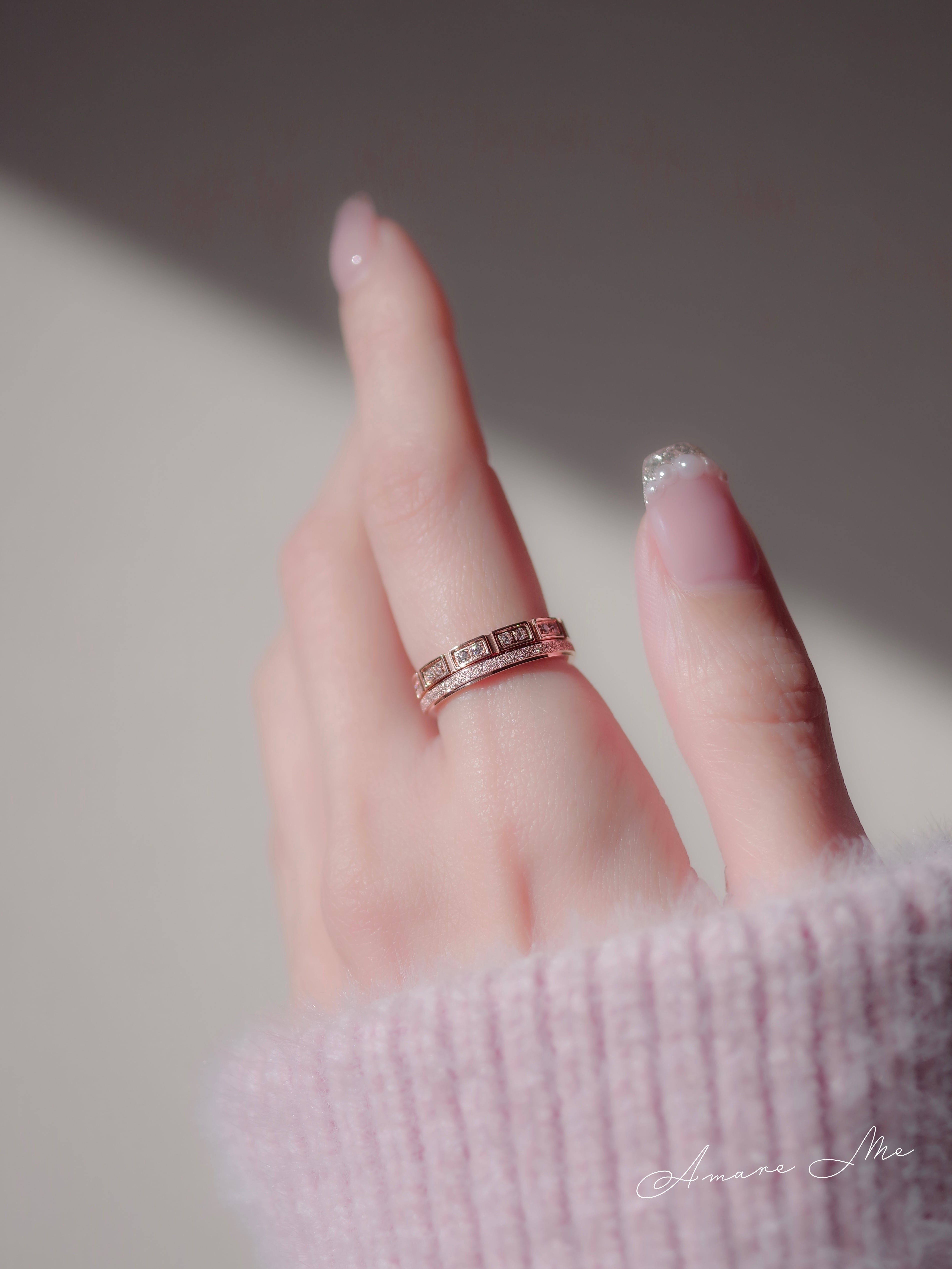 ピンクゴールドはピンク系の温かみを持たせたゴールドなので、イエローベース・ブルーベースどちらの方にも馴染むカラーとなっております。またベースはゴールドのため、光によってはゴールドに見える場合がございます。