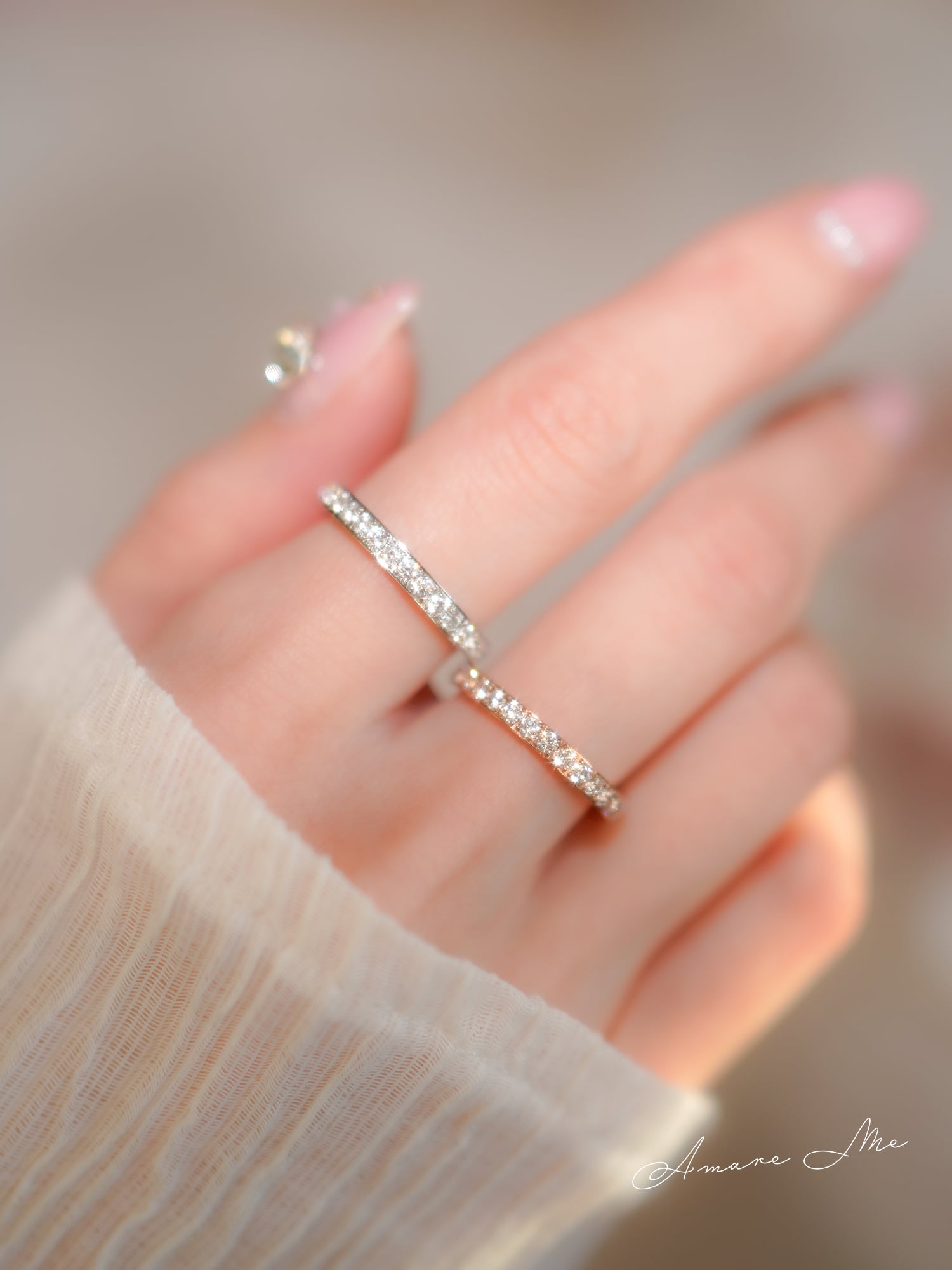 ⚪︎ リングの幅が太すぎず細すぎない絶妙なサイズ感なので、メインのリングとしての着用はもちろん、重ね付け用のサブリングとしても楽しめる万能リングです。