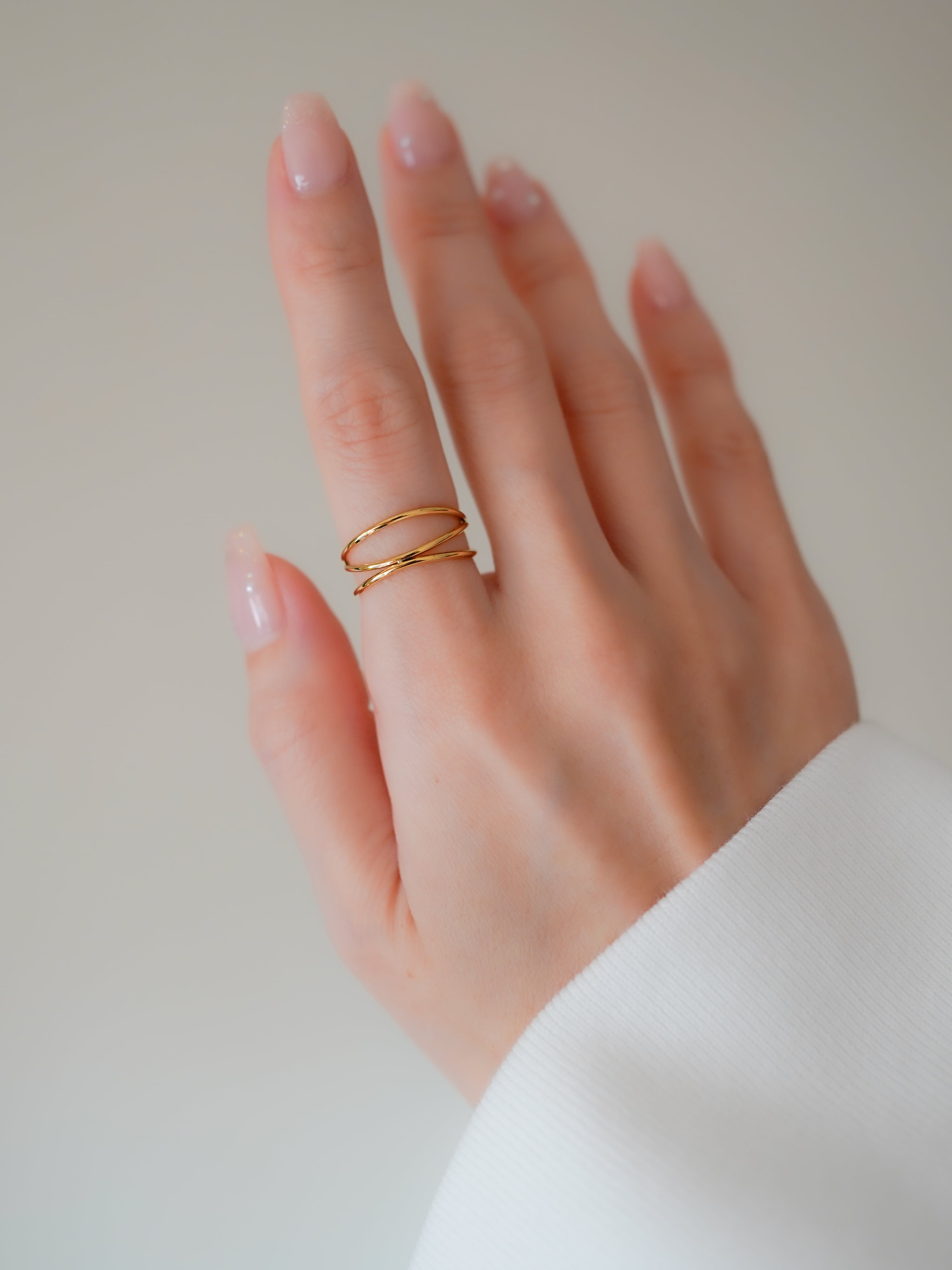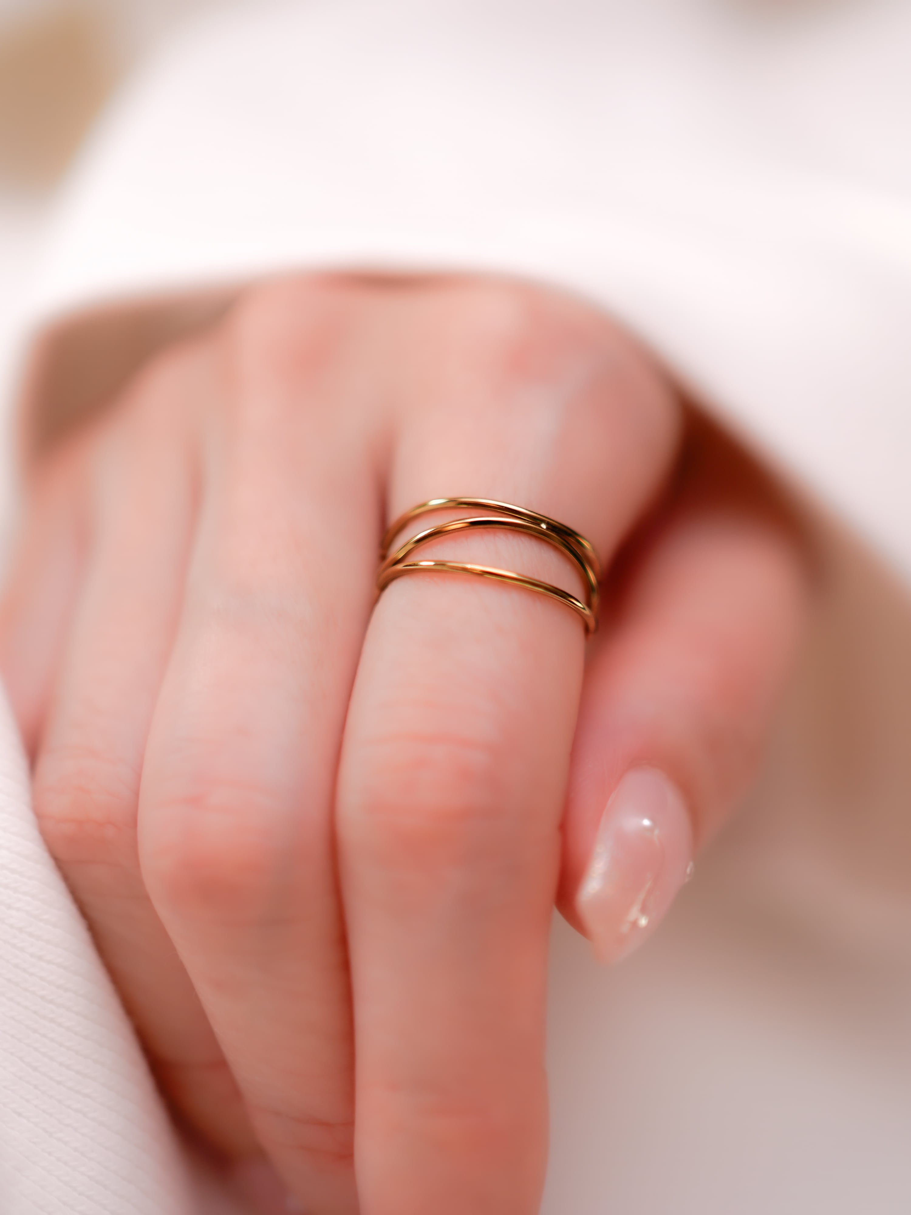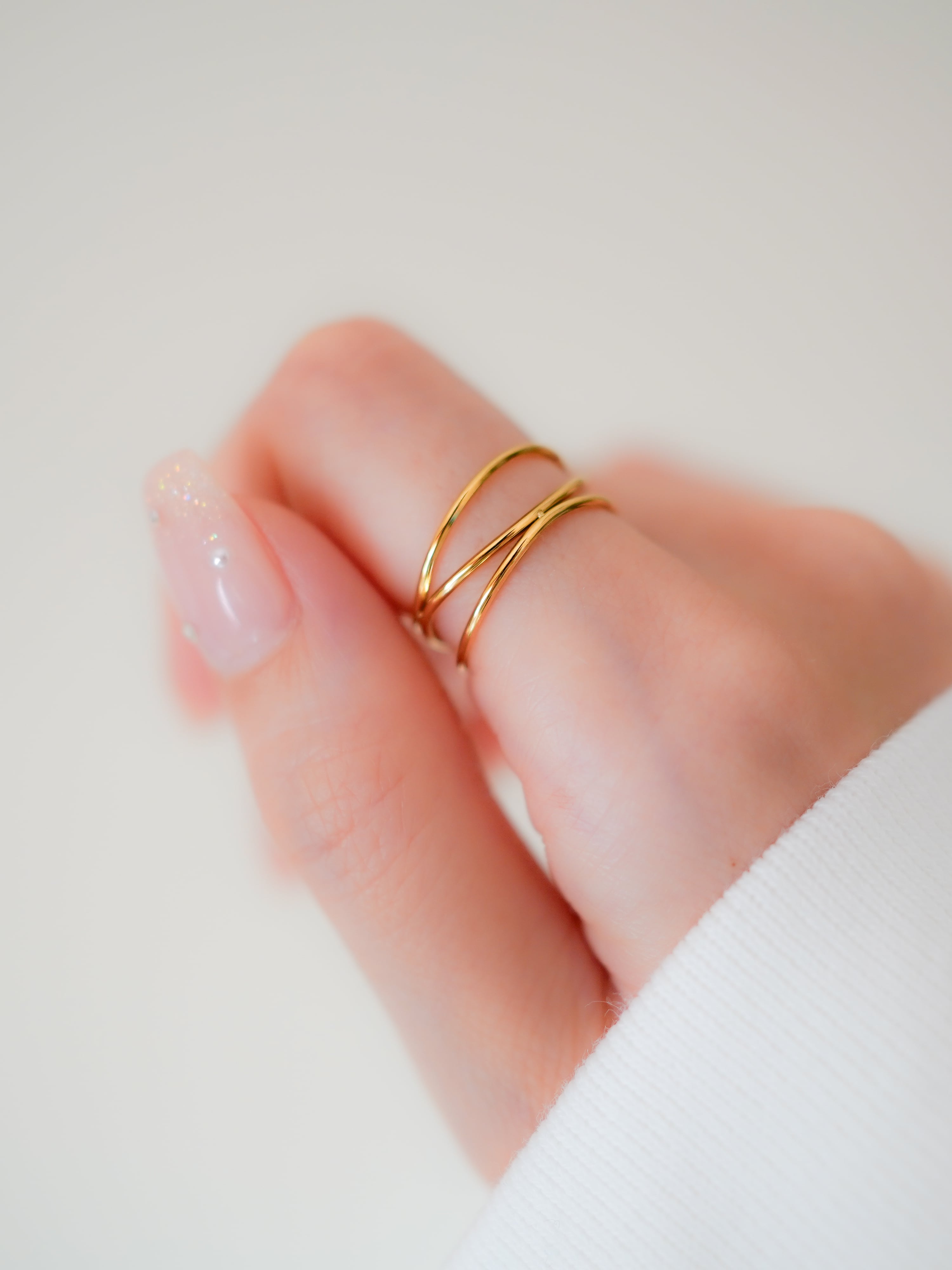 複数の極細リングを重ねたデザインリング。