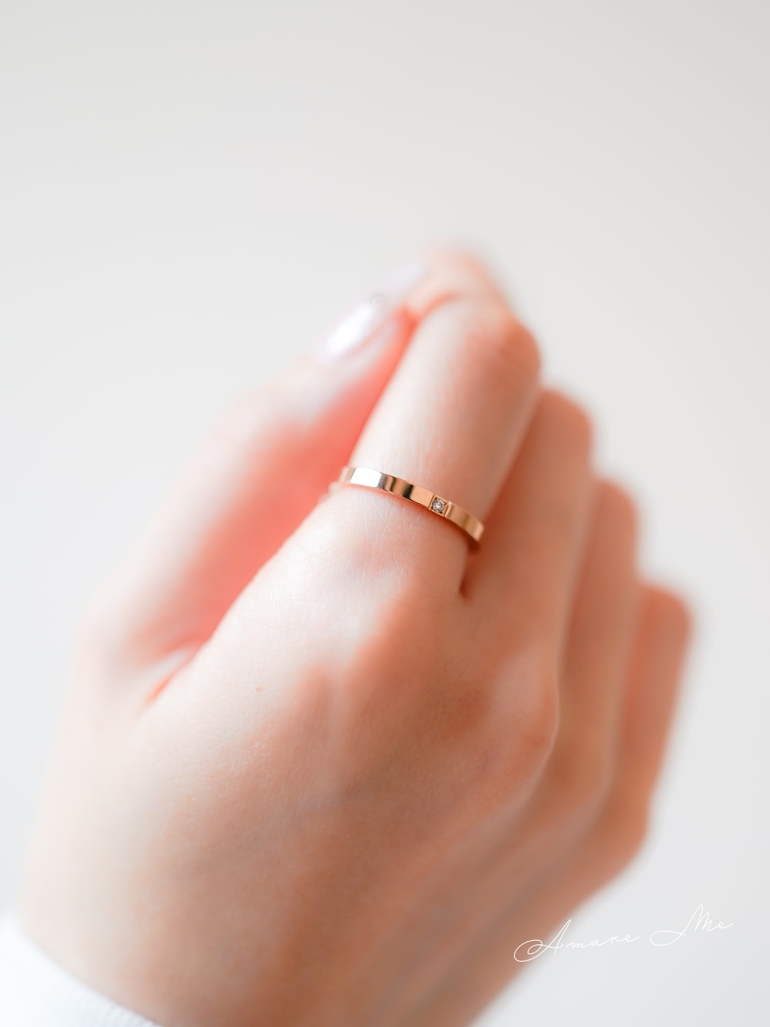 ダイヤモンドを埋め込んだ華奢リング❤︎
